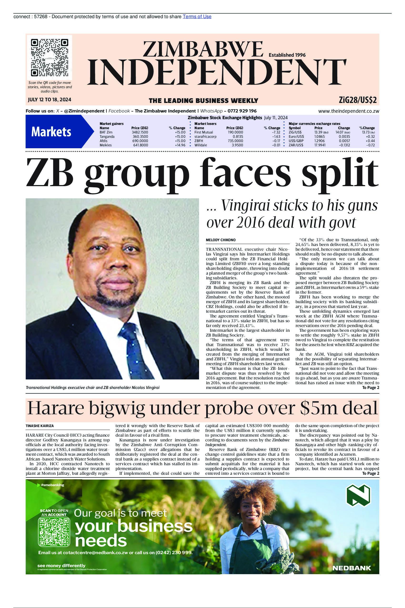 ZIMBABWE INDEPENDENT 12 07 2024